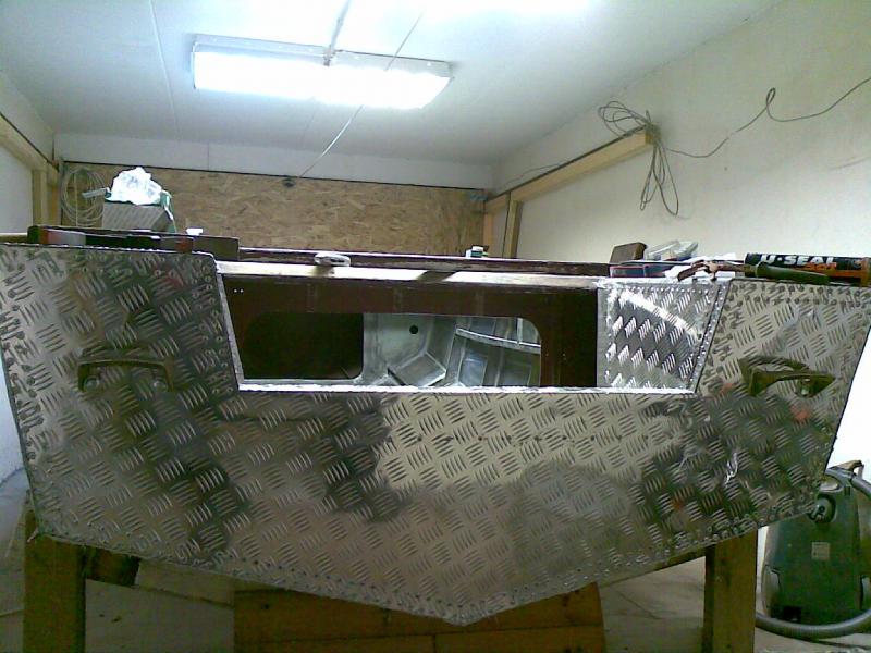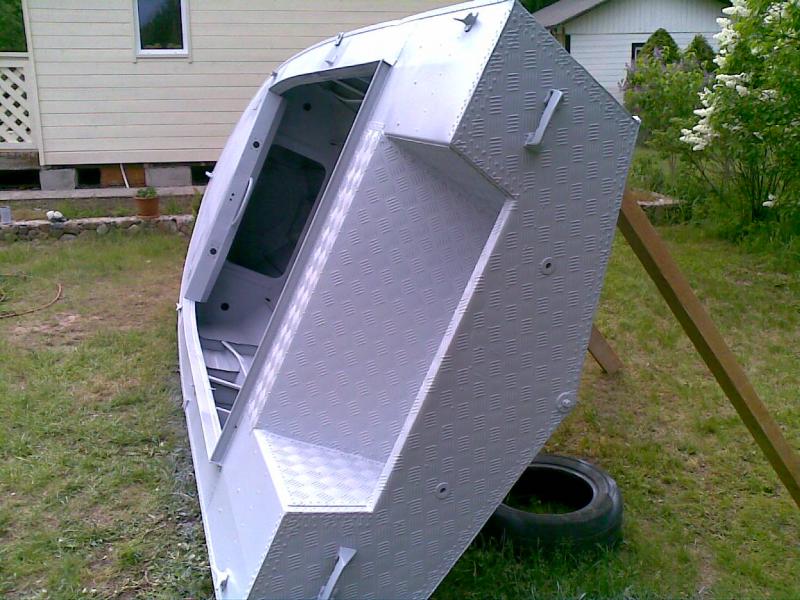 Из листа АМГ-2 2мм. вырезаем транец и пришпандориваем его: