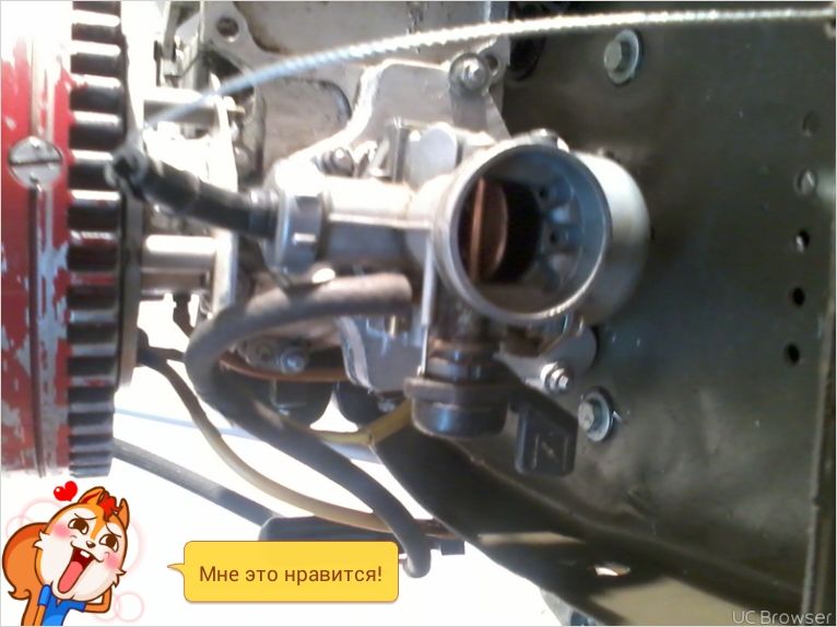 заводится но явно топлива чуть маловата, и работает неустойчиво, если есть желание можно на место вернуть родной карб, заклеив две дырки от болтов