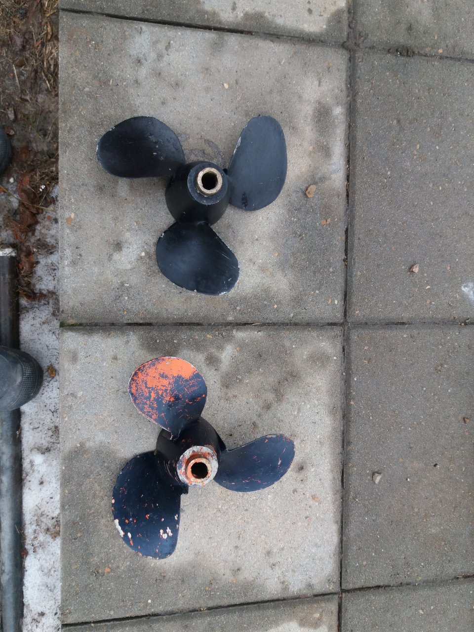 Фотографии винтов с обратной стороны дали бы точный ответ- от Нептуна они, или от Москвы.Винты этих моторов не одинаковые:винты Москвы-25(30) устанавливаются на Нептун без каких-либо переделок,а винты Нептуна без переделки установить на большую Москву не получится.В советское время владельцы Нептунов часто покупали и использовали винты Москвы по простой причине-их было гораздо проще купить.Винты Нептуна:240300(скоростной),230280(штатный),260220мм(грузовой).Винты Москвы-25(30):228300мм(скоростной),230280(штатный),232250(грузовой).