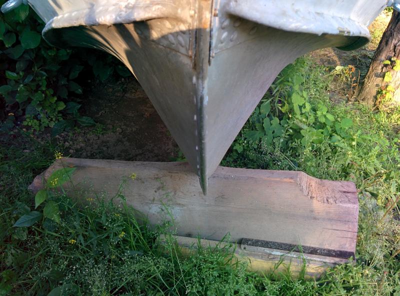 Добрался до лодки после работы, сделал фото почти доделанного транца и проблемного(или не проблемного) киля в носовой части.