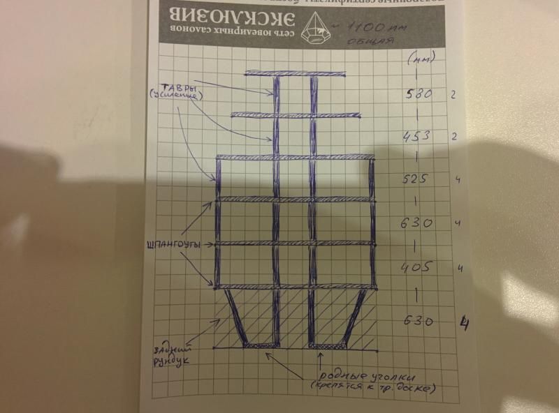 Вот накидал предварительно схему расположения Т-образного профиля между шпангоутами. Кстати если кому пригодится, то справа на фото размеры в мм между шпангоутами.