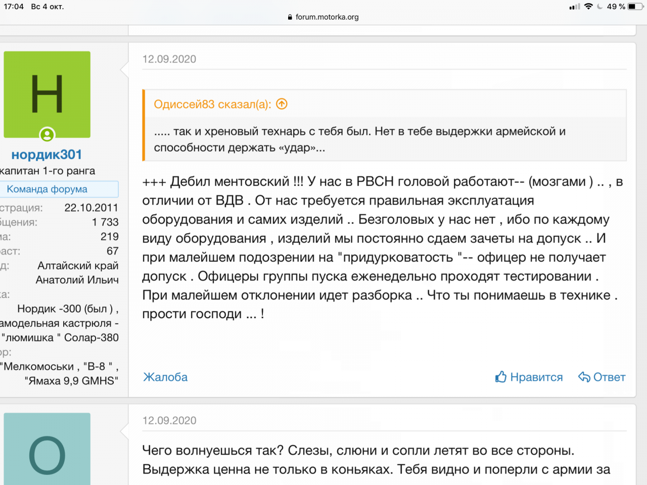 Да не от читания стыдно должно быть — стыдно должно быть от того что это случилось в результате твоих таких неправильных действий. И не читать все это бездумно ТЕБЕ надо — выводы сделать что делал неправильно. А получается — Чужого мнения для тебя нет.. Блеск короны что ли разум отключил... Если ты модератор — не будь членом группы участников спора. Не дели на своих и чужих.. И нельзя наказывать за того чего в правилах нет — ТЕБЕ ЭТО КСТАТИ СКАЗАЛ МОДЕРАТОР С БОЛЕЕ БОЛЬШИМ ОПЫТОМ.. ЕГО ТО ВЗГЛЯД СО СТОРОНЫ ДЛЯ ТЕБЯ ЗНАЧИТЬ ХОТЬ ЧТО ТО ДОЛЖЕН ПО ЛЮБОМУ.+++ Ну вы хоть подождите , когда Администратор Сергей погоны с меня снимет.. Тогда эту "зашибительную " должность и делите ..