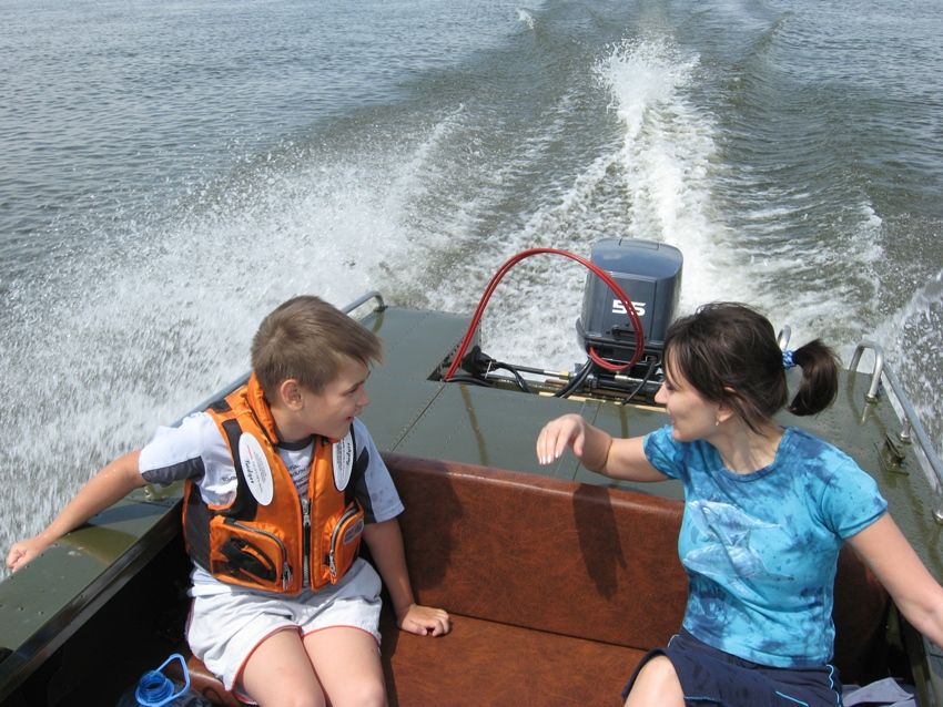 ПРОГ - красавец!!! 4ка - на "5ку"!!!!молибога сказал(а):После четырех часов обкатки на разных режимах попробовал на максималку-скорость на штатном винте 13 при достигнутых оборотах 5200-- 55км/час(мотор откинут на одно отверстие от кормы).Как и ожидалось,с пассажиром на штатном месте лодка практически без дифферента на корму разгоняется до максимальной скорости ,глиссирует на кормовом участке днища,след от мотора гладкий без петуха.Никакого дельфинирования.Ощущения полета и надежности.Хочется гнать без остановок.