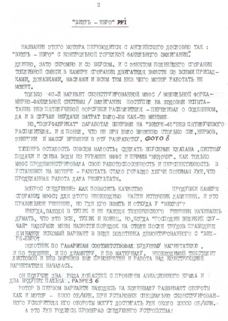 Работы по усовершенствованию "Вихрь-евро" PFI продолжаются. Ведутся испытания систем, доводка и прочие творческие процессы. Начаты работы по оснащению "Вихря-евро" системой прямого впрыска топлива в цылиндры.