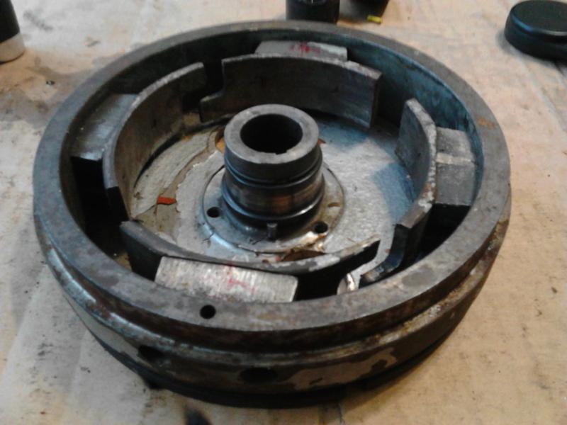 На заводе после сборки магнитов маховика протачиваются башмаки для выравнивания неровности сборки и соответственно диаметра, винты при этом срезаются заподлицо с башмаком. на двух твоих фото винты (я вижу 5 штук) углублены в башмак что говорит о разборке маховика далее думаю комментарии не нужны.