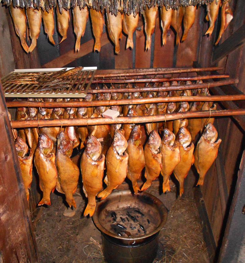 пока оттирать, я в это время буду уже рыбу коптить и вкушать Я не понял, у тебя дрова из тальника в баке тлеют или щепки на тазу лежат и тлеют и неужели такой маленький бак способен такую большую коптилку прогреть до горячего копчения.lesh сказал(а):В баке тлеют дровишки вкусные и в нем нет отверстий . Сверху плотно накрывается тазом. Нужно дырок набить в тазу не больше, чем нужно, иначе как костер разгорится...... Я пробовал листвяком, сосной, осиной, ольхой - не вкусно. Самое то - это тальник у нас. Говорят еще трухой березовой без коры неплохо получается, но я не пробовал...