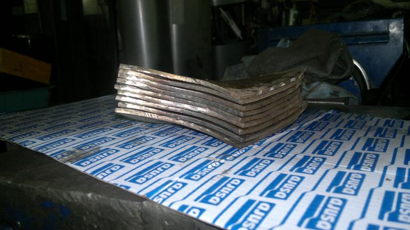 Отформовал все лопасти, на три винта, под 14 шаг. Решил не делать силовую (чтоб стучать) горку на каждый шаг, проще потом приварить готовые лопасти к ступице с нужным шагом, и подкорректировать. Сложный изгиб получился одинаковым на всех лопастях, за него я боялся больше всего.