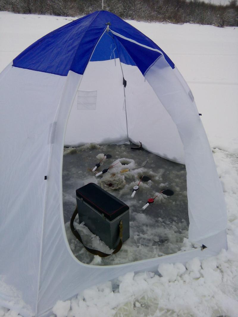 Вывод: бюджетная палатка, быстрый "запуск", ремонтопригодная, выглядит красиво, защищает хорошо. Для людей с прямыми руками и не очень частыми выездами на рыбалку - нормальный вариант. Проволоку на звёздах лучше сразу заменить, чтобы не обломаться неожиданно на льду.