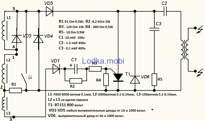 Итого имеем общее сопротивление цепи заряда накопительного кондера 810+6+51=867 Ом.