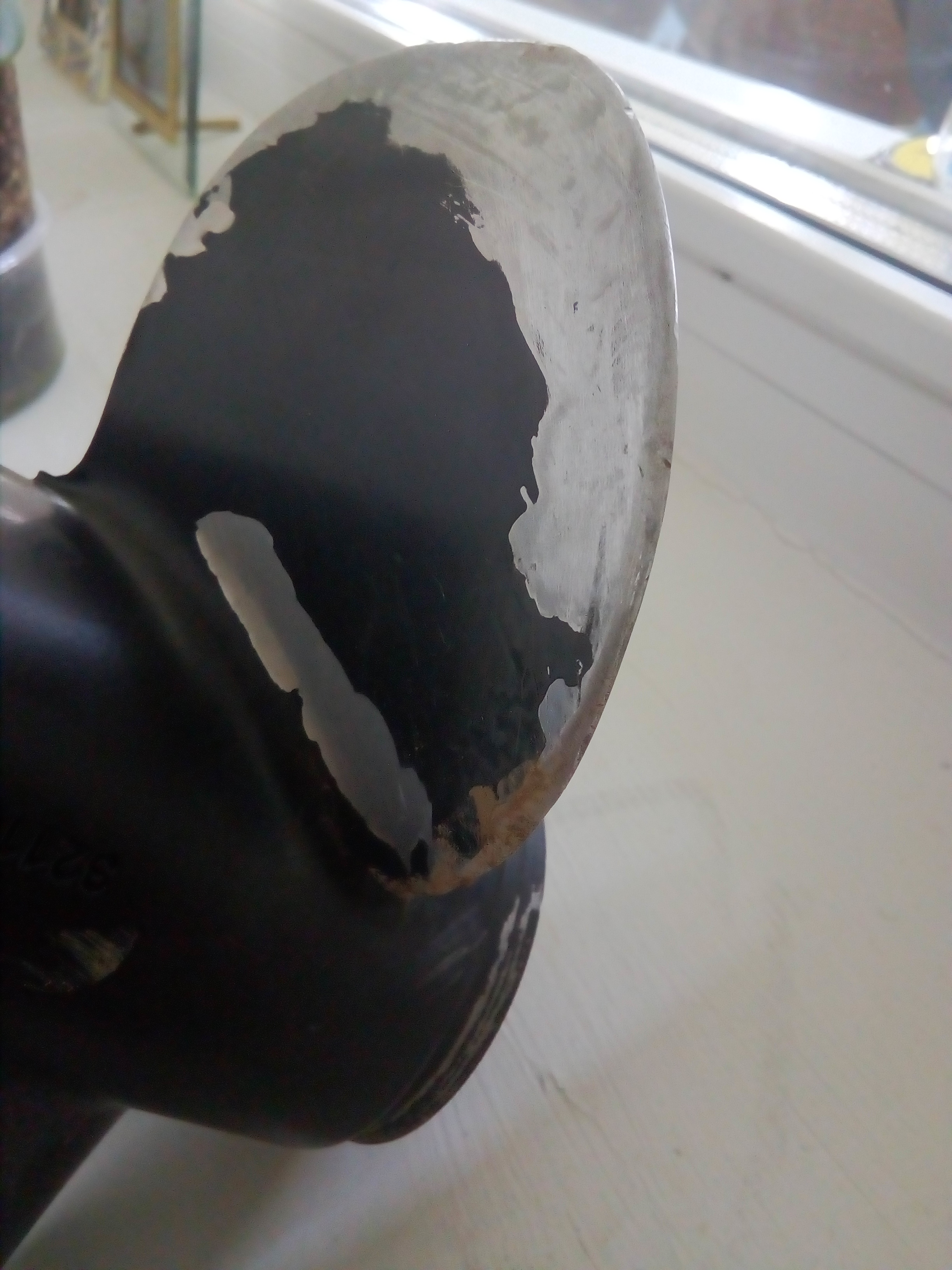 Форма, сечение лопасти не соответствуют минимальному сопротивлению. Бывают грубые тупые края, тупая выходящая кромка, толстый профиль, неровная поверхность. Видимо, это кокильное литье с его ограничениями. У меня такой был новый "оригинальный" винт на Ямаху-30.