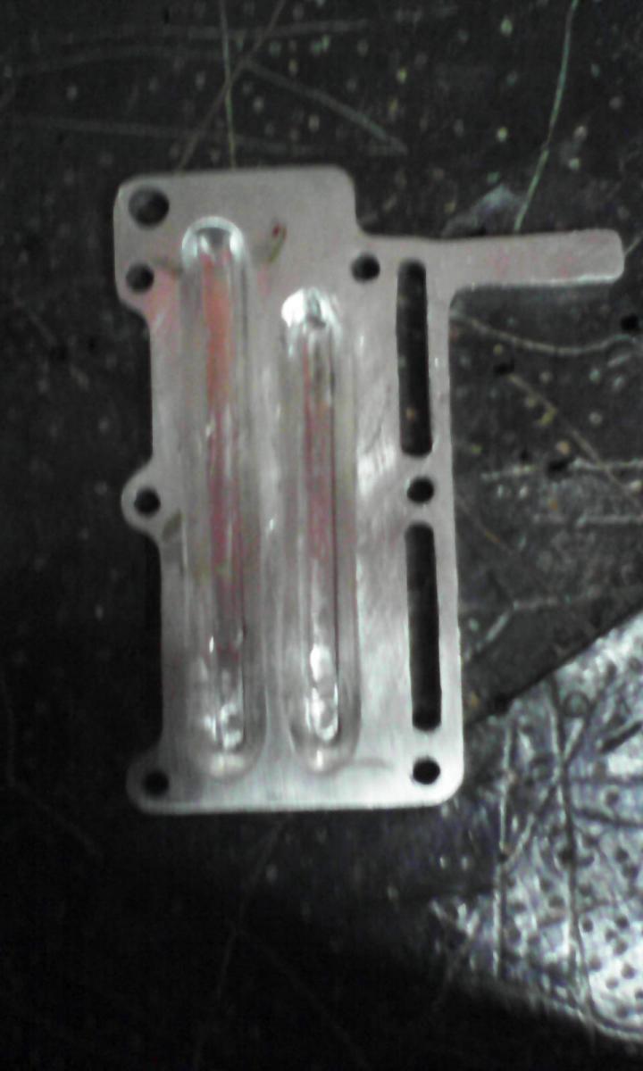 Вопрос ? Изготовил отражающую пластину, материал АМГ2м, толщина пластины 10 мм, так вот при такой толщине хоть гравюру вырезай , Сашок 33 с мотолодки всегда писал, что надо наклепывать пластину, хоть на 3 мм , хоть на родную, я хотел бы отфрезировать ее со стороны выхлопных окон, как нибудь по хитроправельному , так вот и вопрос как? есть вариант прорезать на глубину 5-7 мм (отмечено коричневым) в два паза шириной 10-12 мм, есть вариант прорезать тонкие по 2-3 мм , но много.