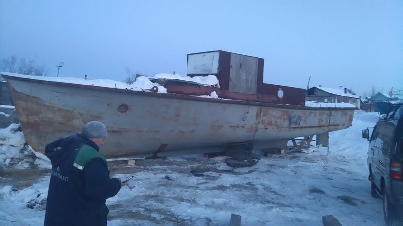 И вот подвернулся вариант, катер нам был знаком, видели его на воде периодически, да и года два с половиной назад он меня буксировал когда Тохатсу крякнул... После случая с буксировкой катер был продан, какое то время не появлялся до июля прошлого года и тут нам подфартило. Новый хозяин был не очень хорошим мореходом и двигатель в одну поездку он очень легко ушатал, чем мы с братом не преминули воспользоваться! Ремонтником он оказался никаким, запчасти на 2ЧСП найти сложно нынче, поэтому на предложение обменять его на УАЗ-469 и 60тр доплаты после недолгих раздумий согласился! Ну и вот:Вложения