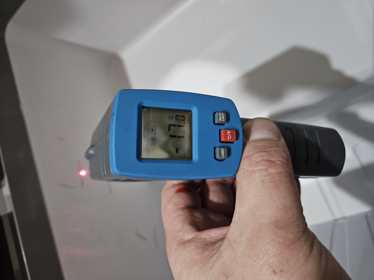 Вчера догнал его до минус 20С°,в 22:47 выключил, сегодня в в 7:16 уже плюс 12С°, в доме плюс 22-25С° ,пирометр от холодоса ,корпус показал низ 18С°верх 20С°, незнаю , плохо или хорошо, это, но как по мне как то быстро нагрелсся, но он и пустой