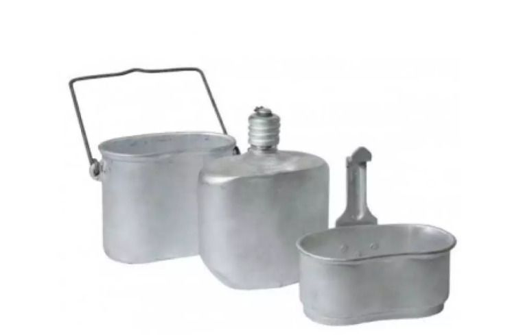 Подобный котелок с флягой регулярно брал с собой в горы на охоту. Исключительно для разогрева тормозков. Готовить в нём стрёмно. И чай заваривать удобен. Примусы и печки не таскали. Под ногами всегда хвороста полно. Так что костёр это самая универсальная печь.