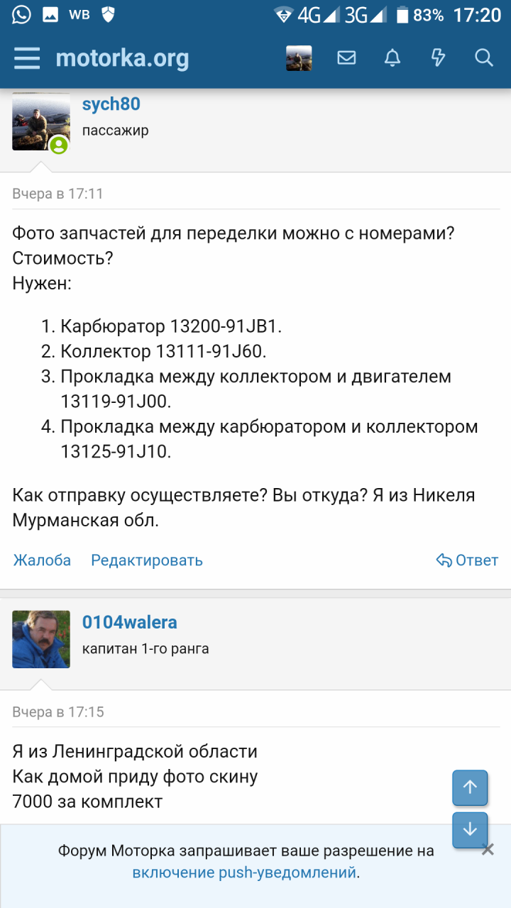 Прочитай переписку? Могу ссылки скинуть откуда эти фотки. На хрена мне это.м не запчасти нужны были. Я чуть деньги не отправил. Просто кого-нибудь кинут пока вы разбираетесь. Модератору вчера написал, тишина. Я ж не спорю что он человек хороший. От его имени странные делишки.