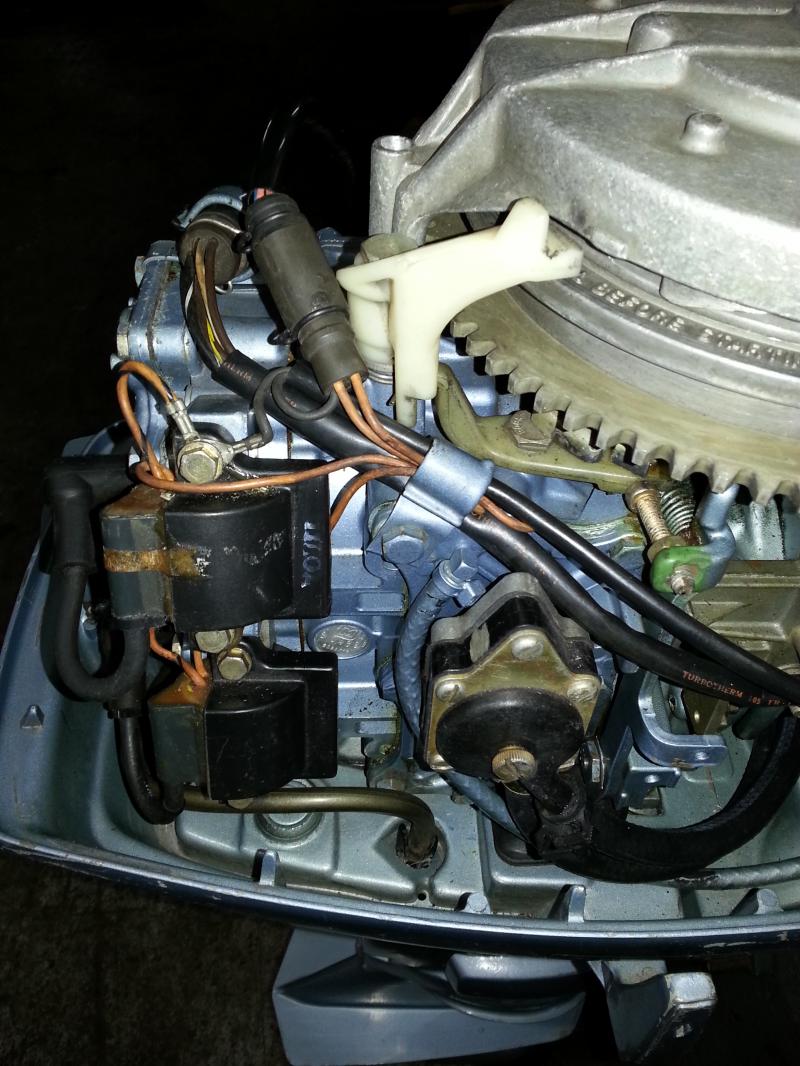 Здравствуйте Уважаемые водомоторники.Вот решил попросить помощи привез из финки мотор эвинруд 20сил годов каких не знаю -2 такта карбюратор вчера решил собрать в кучу тк.мотор перед таможней делил на чясти(голова поддон нога)сегодня собрал нет искры на верхнем цилиндре при сборке понял что на моторе стоит электронное зажигание мотор в голубом корпусе с белым колпаком на шильде написано 209BF62R бельгиец.фото если нужно скину позже.Вот вопрос где ее искать эту искру и с чего начинать.Всем отозвавшимся за ранее Спасибо.
