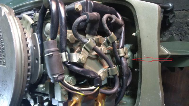 погнуто перо возле винта см. фото, стоит ли выгнуть обратно? Там ли стоит термостат где стрелка? Свечи стоят родные L78V, правильно ли выбрал замену - NGK BUHW-2? Нужно чистить карбюратор и бензонасос? Спасибо за ответы.