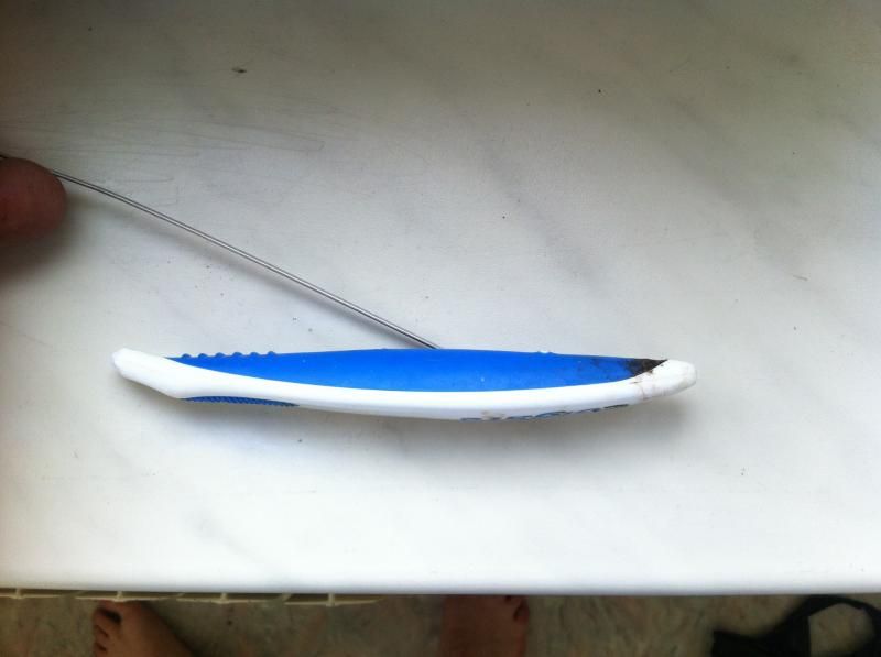 Обычно я щетки выбрасываю или использую для чистки запчастей в гараже, а тут дурная голова рукам покоя в очередной раз не дала, замутил бесплатный воблерок. Я кончно подготовился к лету и тролингу , но лишними воблеры не будут. Конечно доводить его надо, балансировать, но сама идея хорошая, я считаю. Пробовал в ванной, вроде работает. Что интересно, оперативно можно менять "игру" воблера. Можно добиться уникальной "игры". К тому же ловить на собственноручно изготовленеые приманки намного интересней.