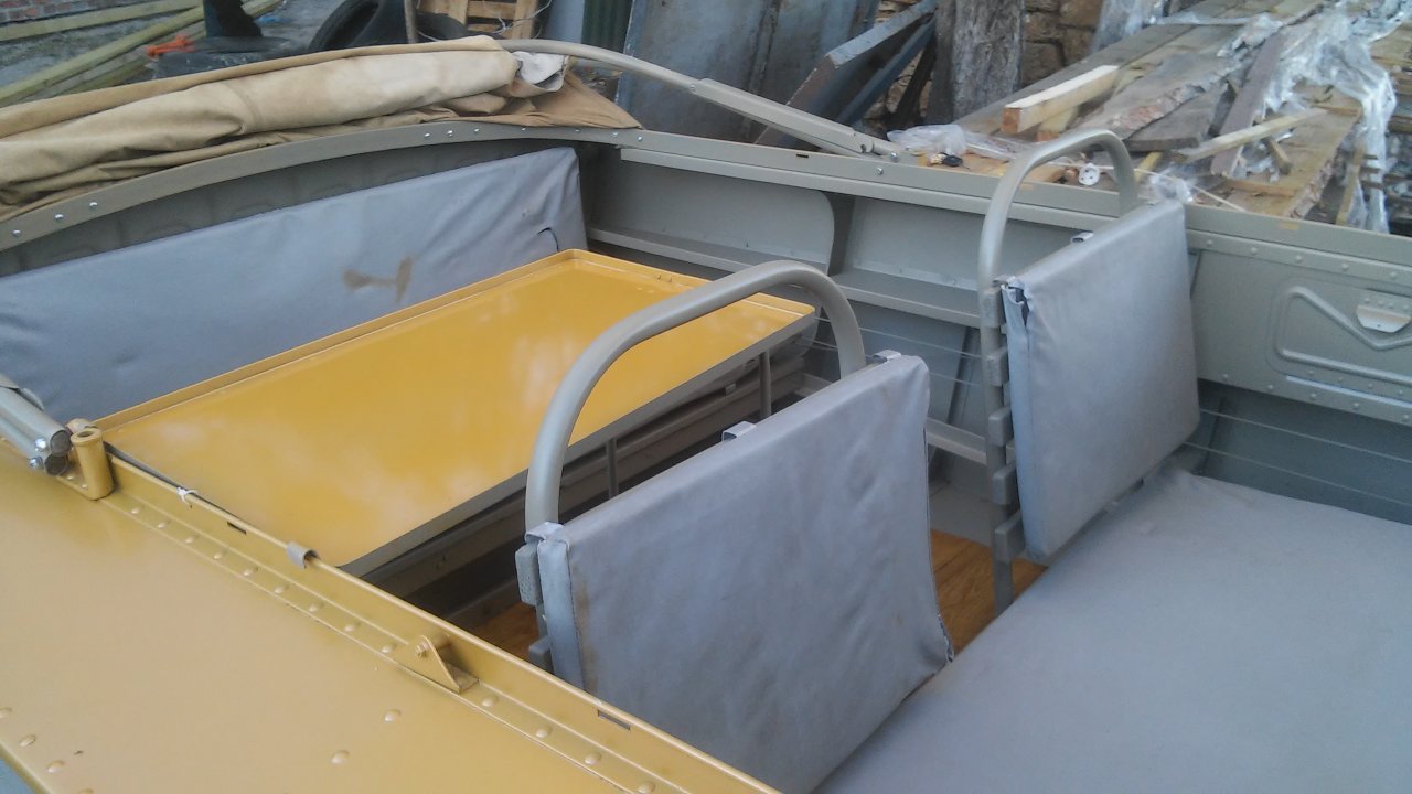 Лежит у меня столик от "Прогресса", никак место не могу найти для него в свою "Казанку". Жаль, что их не оборудовали заводскими столиками. Кстати, для чего у него короткие ноги? Длинные понятно: для установки к борту.
