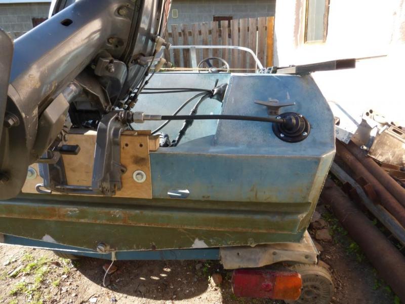 Всем привет!!! Начал по- маленьку готовиться к сезону. Водоёмы у нас открываются 15 июня, так что время для подготовки хватит. Установил мотор, рулевое, подсоединил машинку газ - реверс. Рулевой трос 13 футов, встал как родной, рулится легко. Трос и редуктор новые, трос смазал маслом, в редуктор положил смазки Мотюль.