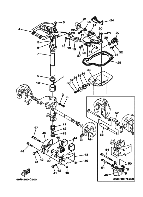 ямаха 30 л.с. при осмотре обнаружил трещину идущую через румпель к скобе переноса. как снять этот агрегат с мотора? и варится ли данный материал? сломалась запчасть под номером 4 на рисунке.