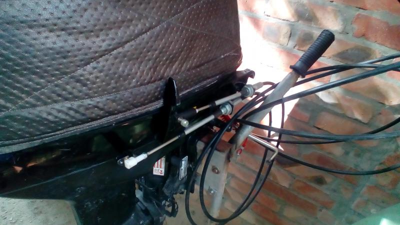Покапался как следует в гараже и сделал себе ДУ на мотор. Троса от комбайна Нива, 4.5 метра, по 800 рублей. С нержавеющими наконечниками. Это вам не китай.