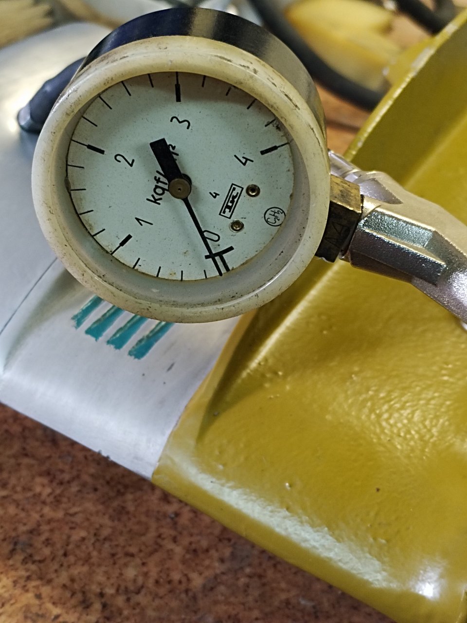 Проверка редуктора на вакуум, манометр отрегулирован от единицы. Разряжение 1 кг, по манометру ноль.