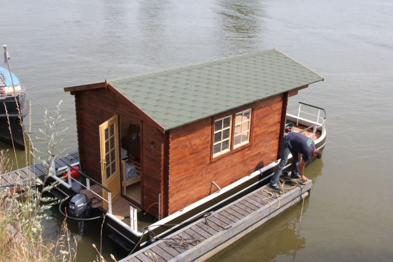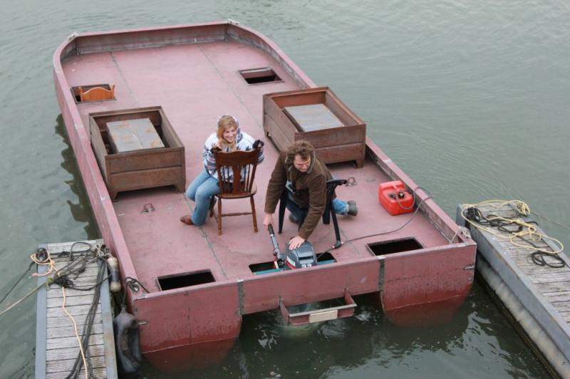 Даже небольшие плавдачи-катамараны вполне можно сделать из стали. Длина этой плавдачи всего 7 метров. Форма корпусов - гранёная. Скорость минимальная и увеличить её нельзя. Единственное, что можно посоветовать - не делать корму транцевой, лучше - сделать такую же, как и нос. Толщина стали не более 3мм.