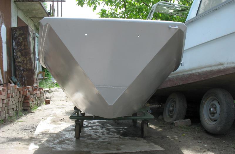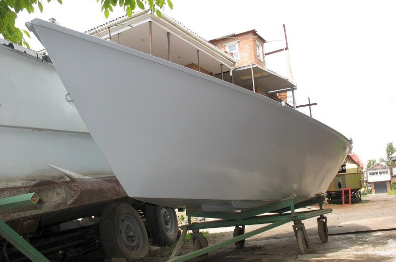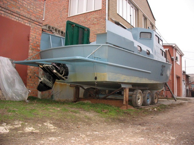 Вот пример такого не очень удачного судна. Форма корпуса - закрученное днище. Но в результате получился значительный ходовой диферент на корму и, как следствие, - большое волнообразование. Сами понимаете - мощность двигателя расходуется не на скорость, а на создание волн. Перерасход горючки и всё такое... Причина - избыточный вес. Ну или неверная форма корпуса - это кому как нравится. Избавить изделие от этих просчётов в любом случае будет стоить недёшево.