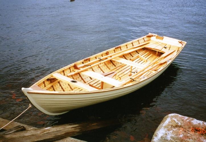 Вот ещё один вариант формы корпуса подходящий для изготовления стальной лодки небольших размеров с минимальными трудозатратами и при этом с очень неплохими мореходными качествами. Основой для проектирования данной лодки, по видимому, послужили лодки типа "дори". Однако кормовая часть полностью оригинальная. То есть автор проявил творческий подход при проектировании данного изделия и сделал это очень грамотно. Такая форма очень хорошо подходит для движения под вёслами или с маломощным подвесным мотором (подойдёт не только ДВС, но и электромотор).