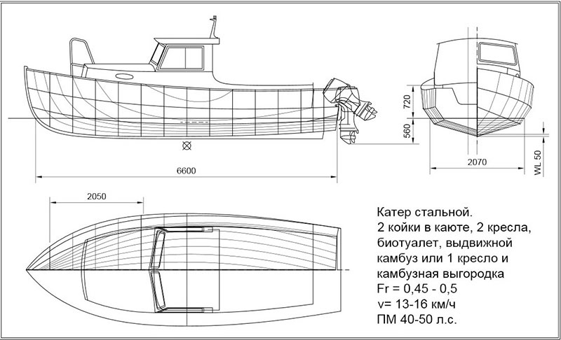 Принимать решение о проектировании и строительстве быстроходного судна из стали следует с большой осторожностью. Причём чем выше скорость и меньше размеры, тем больше отой самой осторожности должно быть. При длине судна менее 15 метров сделать "правильное" стальное судно даже для профессионала очень не просто. Самая распространённая беда при этом - несоответствие мощности, массы и формы корпуса. Другими словами есть большой риск не добиться желаемой скорости и судно будет двигаться в невыгодном режиме.