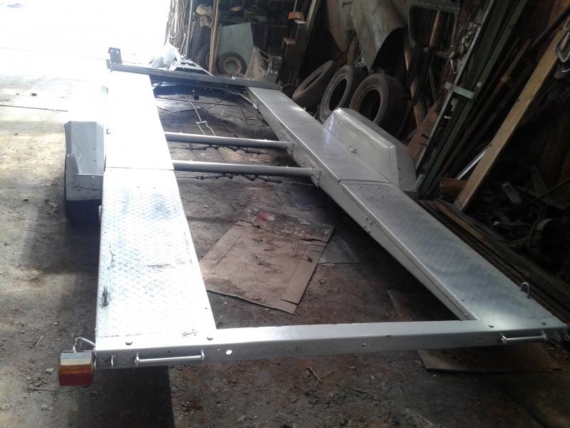 Прицеп автовоз ,поставил поперечные киль блоки перевожу большой катер 8 м