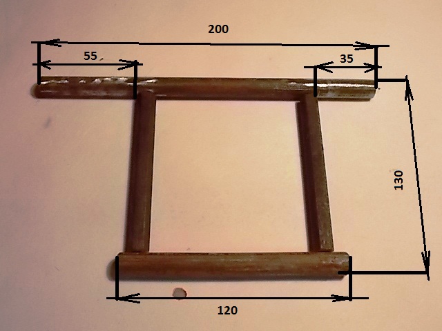 Скоба упор. Материал: пруток, шестигранник 10 мм. Проверена в работе на воде, на мой взгляд в корректировке длины не нуждается. Впрочем это дело хозяйское, возможно кто то пожелает и выше поднять редуктор.