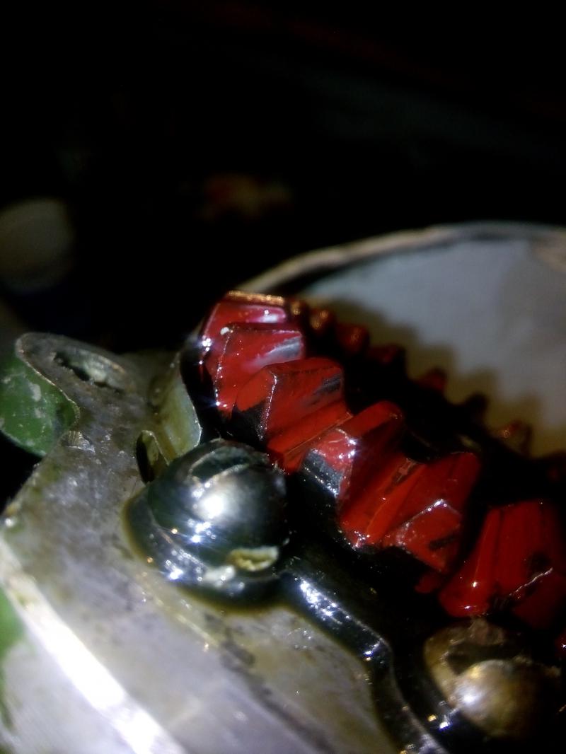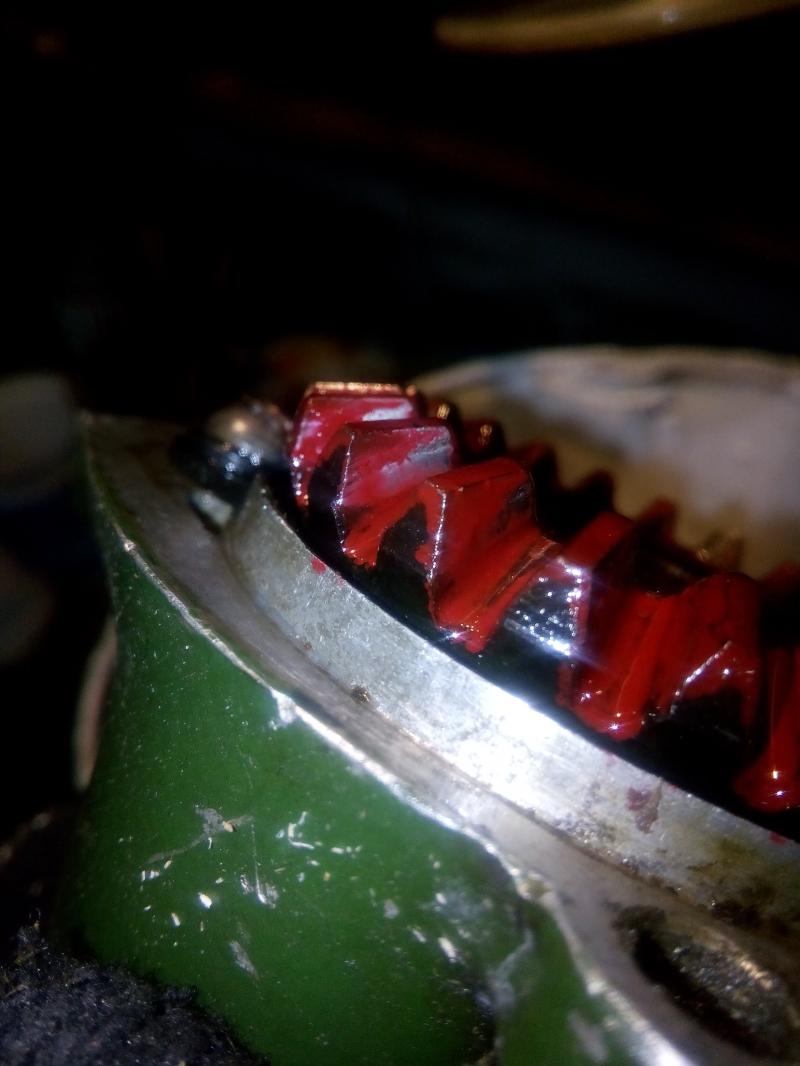 К сожалению с пленкой у меня не получилось. Просто пожеваный кусок целофана, его даже сфоткать не вышло. Но я начитавшись всякого начал красить шестеренку и залепливать ее пластелином.Александр60 сказал(а):Там надо смотреть на пятно контакта, на краску обычно все механики делают, я советую всем - на полиэтиленовую пленку(надень пакет на ведомую шестерню и проверни за рессору с некоторым усилием, результат будет отчетливо виден.pollop сказал(а):Измерил рессора 13.2