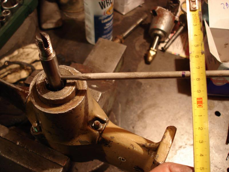 - в отверстие штифта гребного вала вставляем плотно кусок электрода, делаем риску на расстоянии 100мм.