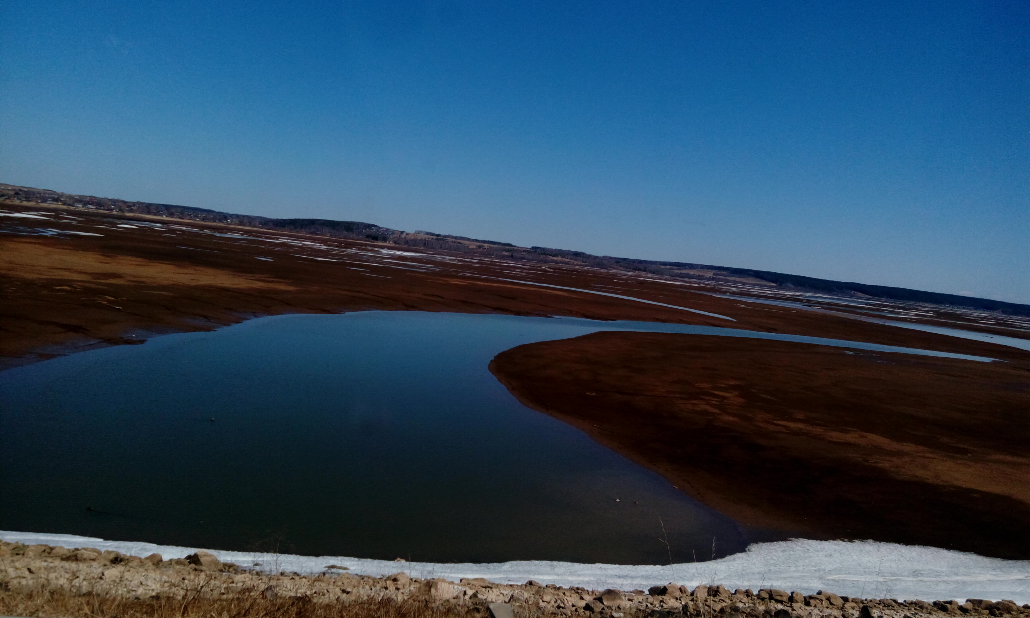 Я в шоке, воду с водохранилища слили за зиму на столько что она осталась только в руслах рек, а тысячи гектар залитых с 1965 года водой, оголились полностью. Наблюдаются только лужи в этих местах. Катера даже в районе Перми- выше ГЭС, стоят полностью на берегу и до воды по вертикали не меньше 2-3 метров.