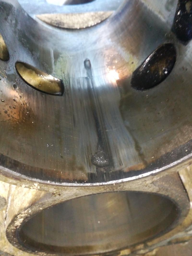 . Верхний цилиндр в норме компрессия 8.5 видно хон, нижний цилиндр видно хон но сверху и снизу две здоровенных выбоины, причем не по всему цилиндру и без задиров а именно друг напротив друга две выбоины как будто специально сделали, компрессия 4. Вообщем понятно что с ним делать - точить. Отсюда вопрос: на сайте TSM Performans продаются ремкомплекты включая поршни и кольца , размер есть аж плюс .040 дюйма???? Что это значит? плюс 0.4 или 0.04 дюйма? просто если 0.04 я уверен будет недостаточно т.к. выбоины очень глубокие, а если 0.4 то такое ощущение что от гильзы ничего не останется, или я ошибаюсь? На фотках они получаются очень плохо - двигатель еще на ноге.